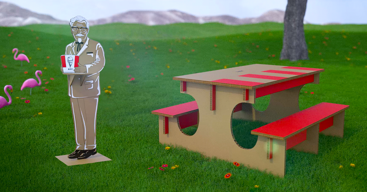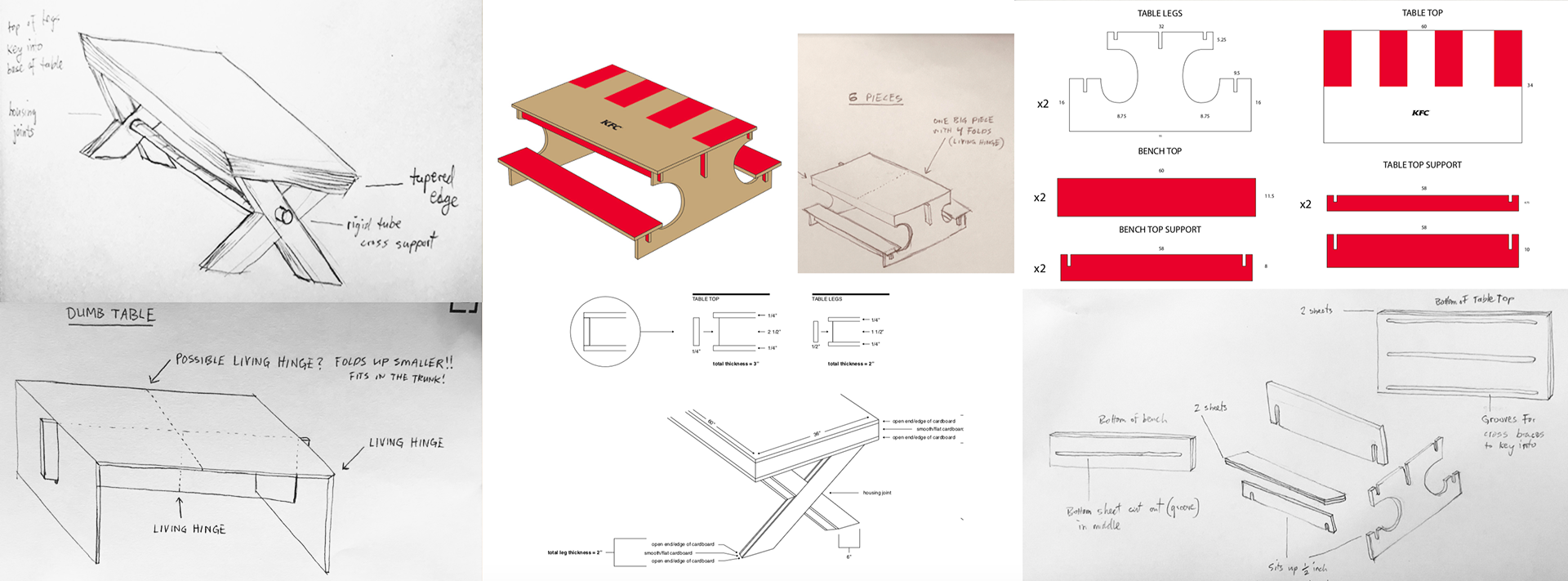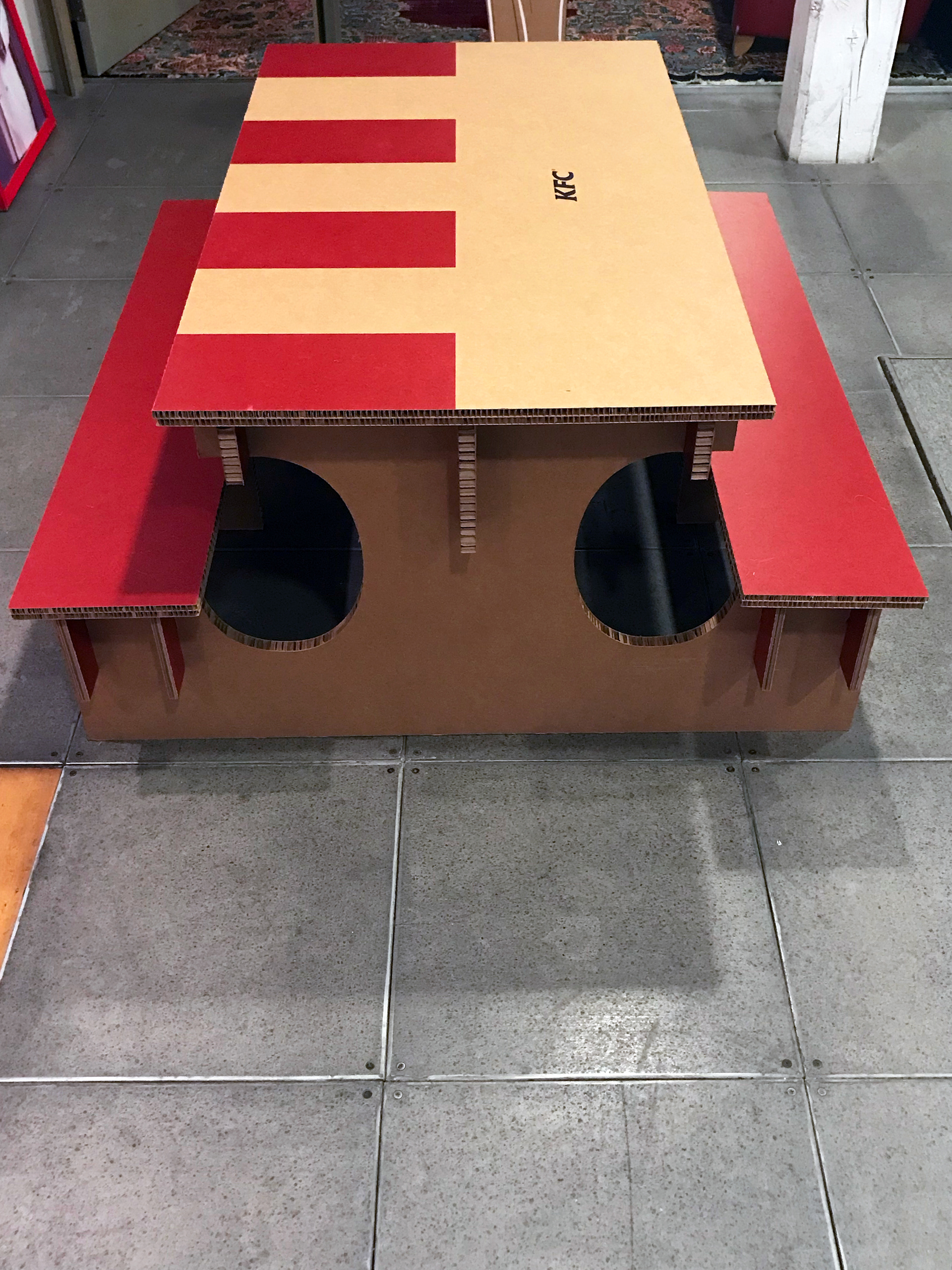 Designed and prototyped this fully functional and modular cardboard picnic table for a KFC ad campaign.