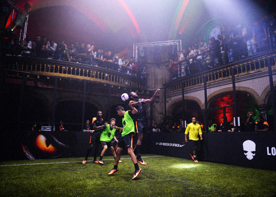 I was briefed to develop a key visual for the launch campaign of a new nike cleat. This menacing shoe with eyes concept became the visual glue for a massive global launch of Nike's latest and greatest boot silo Hypervenom.