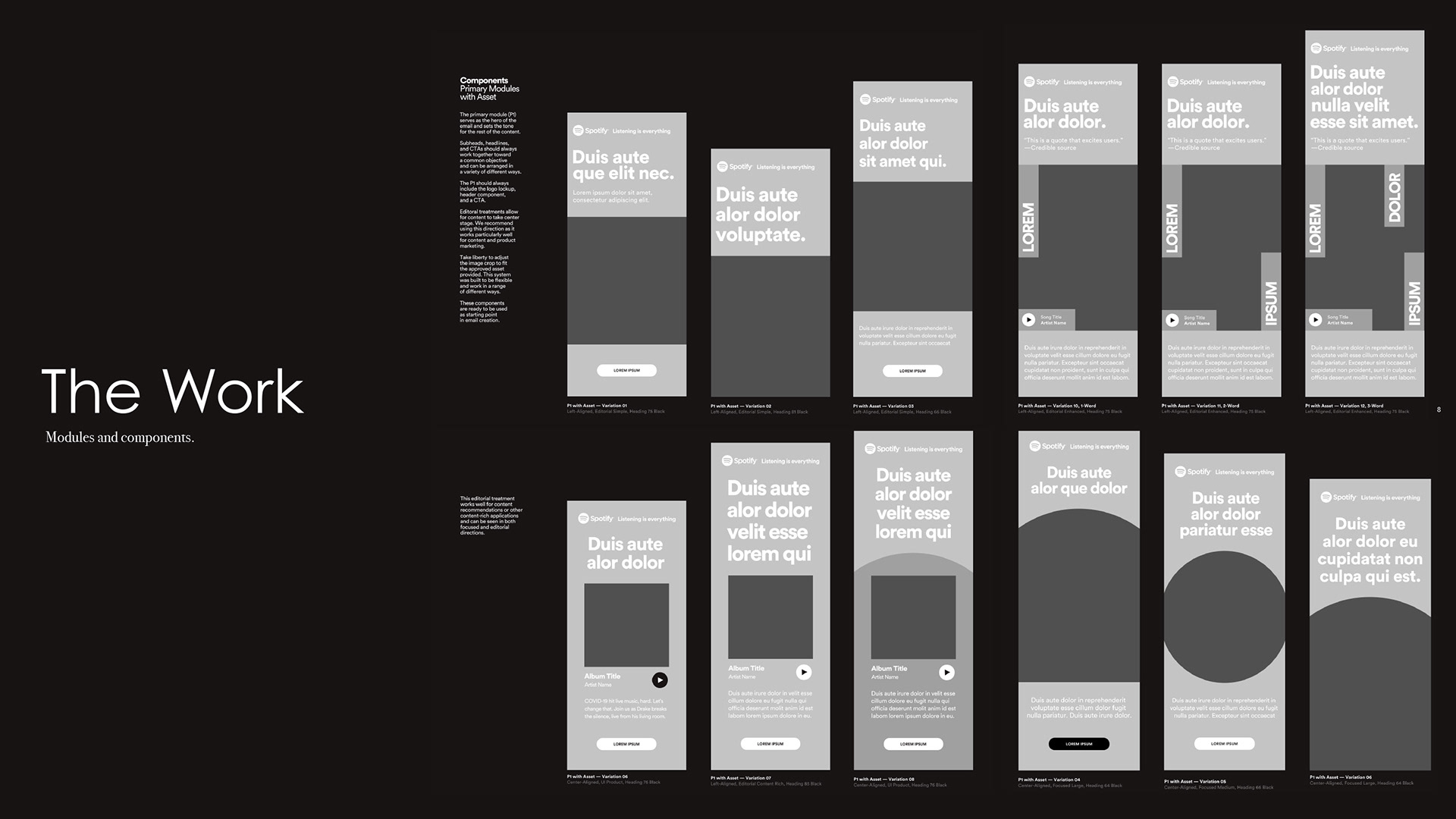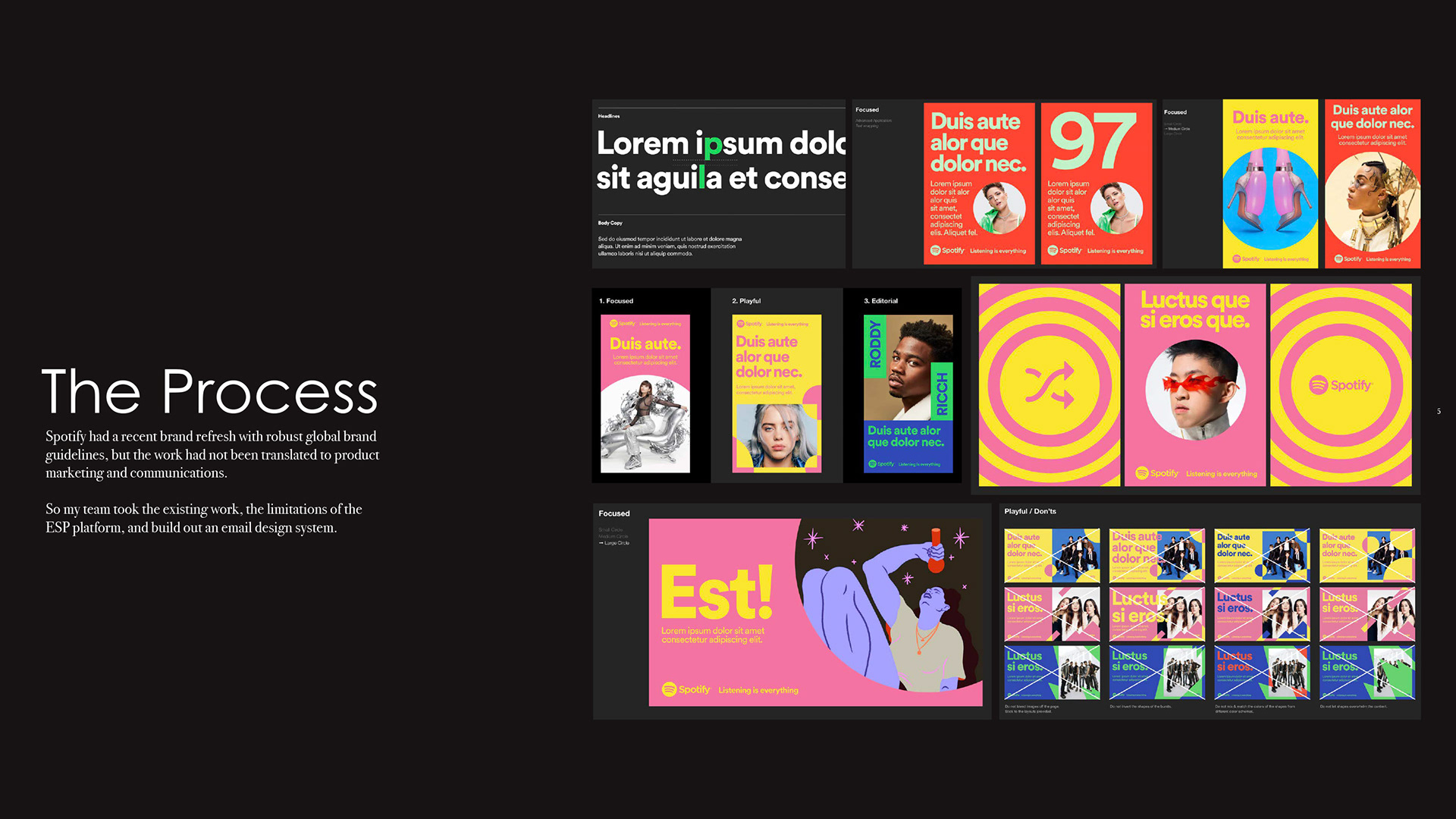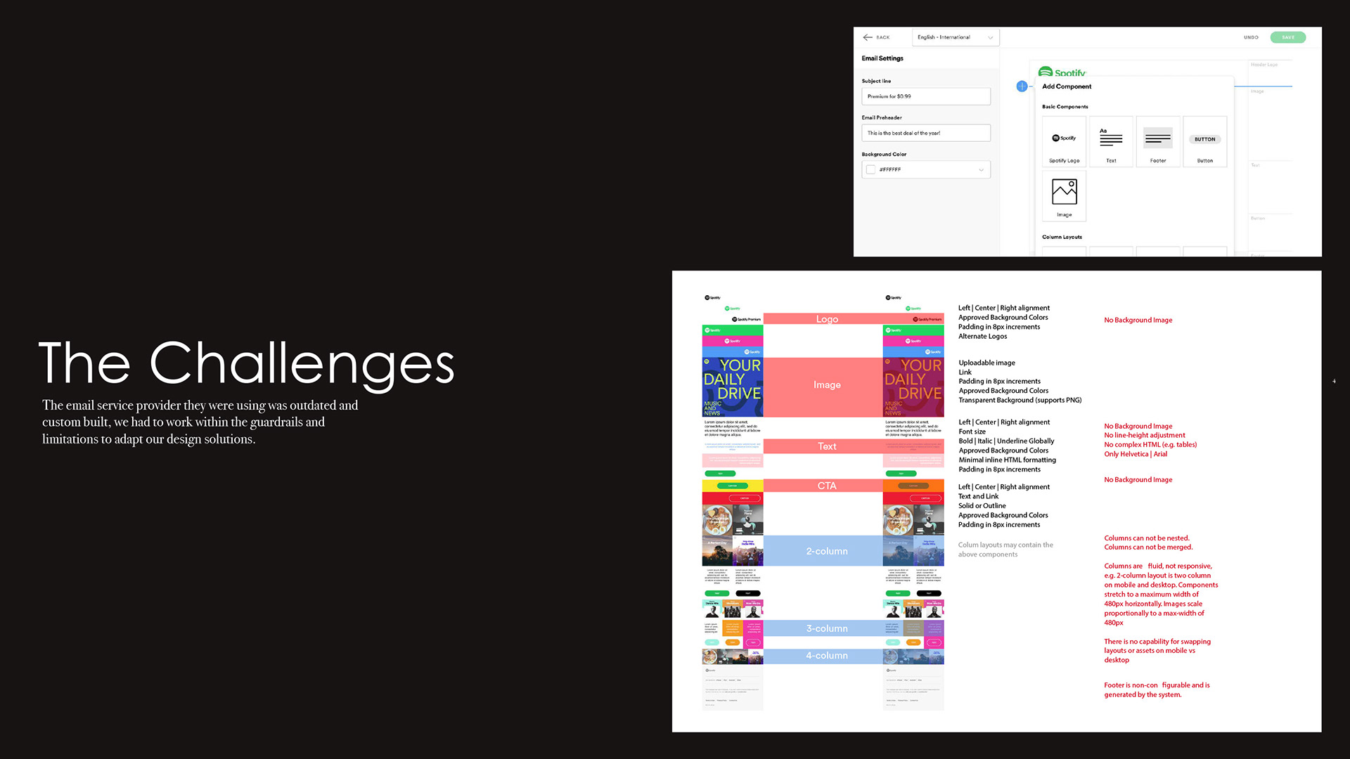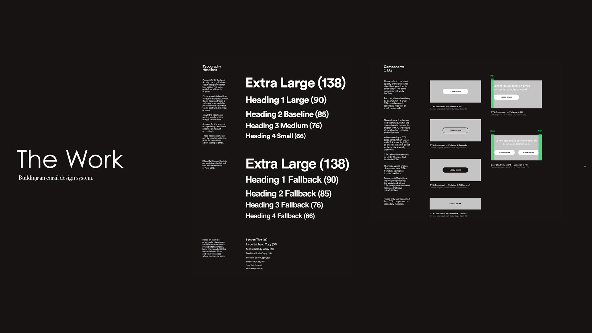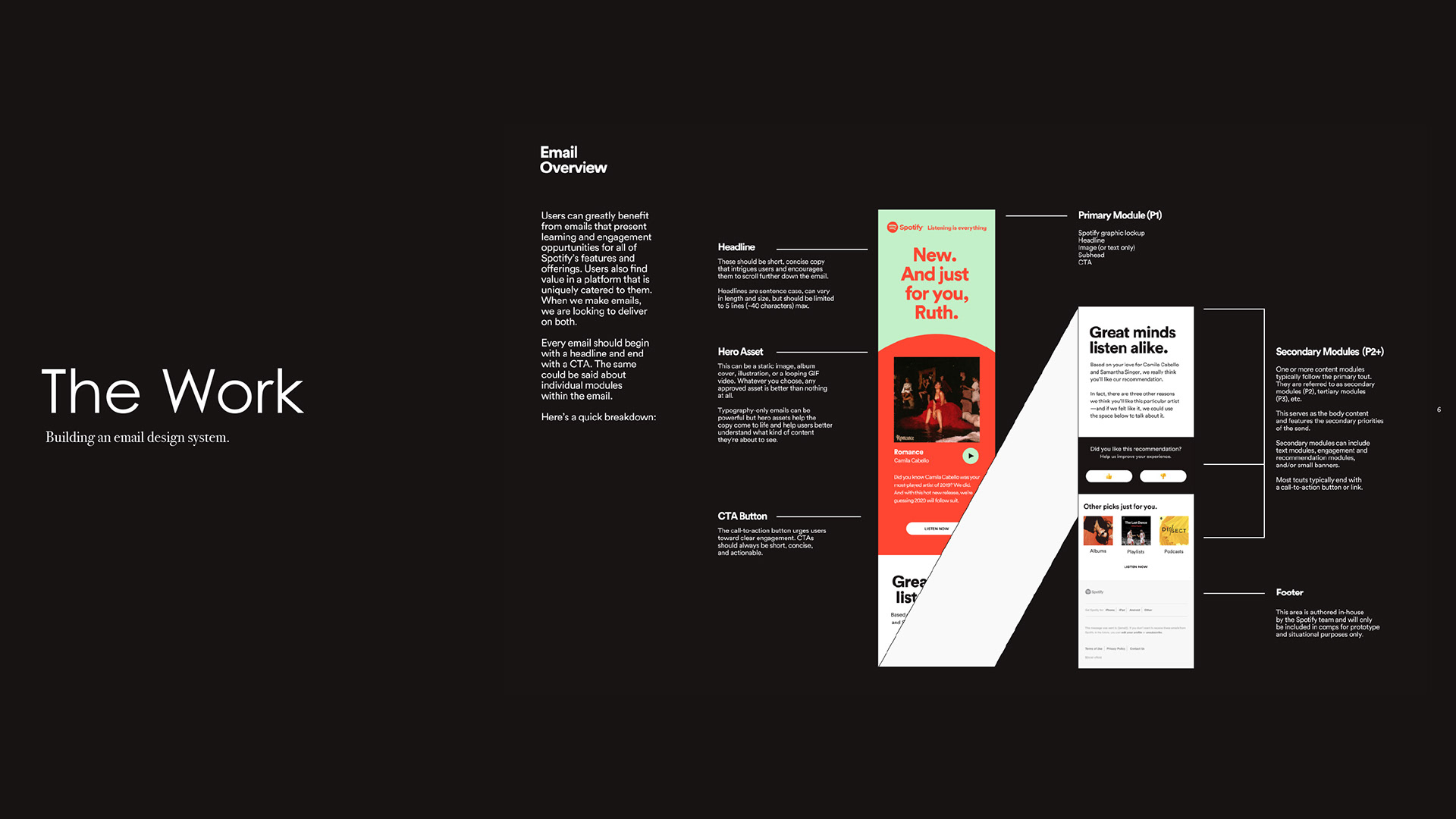 Fresh off of building a new brand system and guidelines, Spotify came to us needing integration of their system into email marketing. What we discovered was they needed a complete overhaul of email marketing assets. So we built them an email design system.